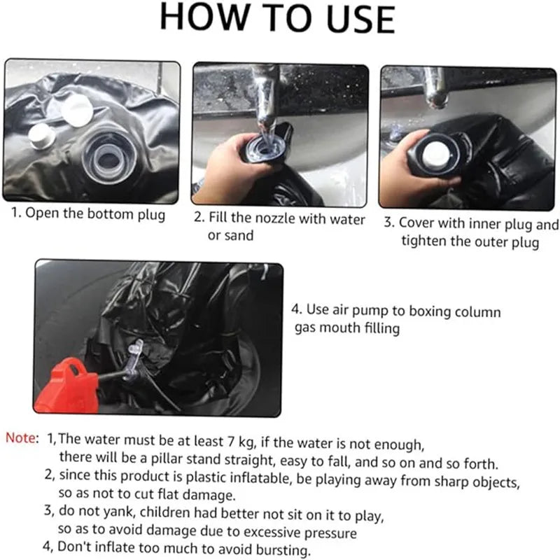 This inflatable boxing bag allows you to put sand or water in the bottom to ensure its stability and makes it more humanised.